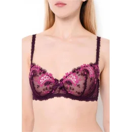 Balkónová podprsenka Simone perál Wish - košíček je vyrobený s prekrásne vyšívané čipky, zadná časť z jemného talianskeho saténu a ramienka sú dozdobená výšivkou guipure. Tvar podprsenky urobí plný, zdvihnutý dekolt.