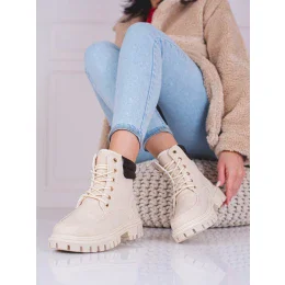 Pohodlné hnedé členkové topánky s plochým podpätkom pre ženy