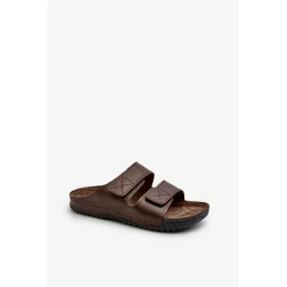 Pohodlné pánske papuče so suchým zipsom Inblu tmavohnedé