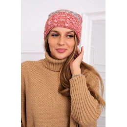 Pola fleecová čiapka K267 červená + svetlo béžová