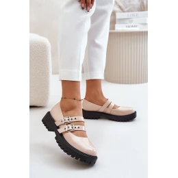 Półbuty Damskie Z Paskami Lakierowane Beżowe Terione