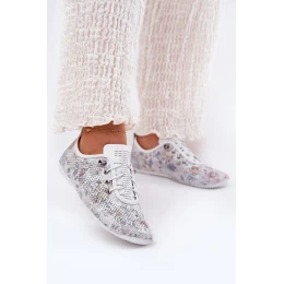 Półbuty Damskie Ze Skóry Naturalnej Wzorzyste Artiker 56C2688 Białe