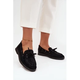 Półbuty Mokasyny Damskie Płaskie Z Wiązaniem Czarne Zalina
