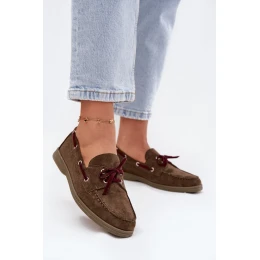 Półbuty Mokasyny Damskie Z Wiązaniem Ciemnozielone Calivra