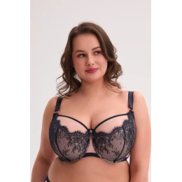 Objavte eleganciu a pohodlie v jednom - polomäkká podprsenka s tmavomodrou čipkou na pevnom podklade je dokonalou kombináciou zmyselnosti a pohodlia. Priehľadný základ vytvára efekt nude, ktorý nádherne ladí so zložitou tmavomodrou kvetinovou čipkou. Polovystužené košíčky jemne modelujú poprsie a poskytujú stabilnú oporu. Pohodlné široké ramienka odľahčujú ramená, takže je ideálnou voľbou pre ženy s plnším poprsím. Podprsenka je vhodná na každodenné nosenie, ako aj na náročnejšie štýly.