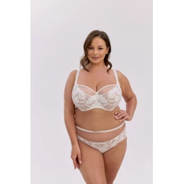 Podprsenka Keto 1134 vo farbe ecru je bestseller, ktorý v sebe spája eleganciu, pohodlie a dokonalé prispôsobenie. Košíčky z jemného priehľadného tylu s výraznou kvetinovou výšivkou na podklade telovej farby jemne zdôrazňujú ženskosť a ľahkosť spodnej bielizne. Stabilný obvod z mäkkého mikrovlákna poskytuje ideálnu oporu a pohodlie aj pri väčšom poprsí. Je to model, ktorý dokonale zbiera a tvaruje prsia a zároveň vyzerá mimoriadne zmyselne a elegantne.
