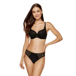 Podprsenka je vyrobená z tenkej korzetovej peny potiahnutej čipkou a vrchná časť je z čipky a tylu, vďaka čomu sa podprsenka dokonale prispôsobí tvaru pŕs. Zadná časť podprsenky je pôsobivo zdobená čipkou. Je ideálna pre asymetrické prsia. Spodná časť košíčkov je z vnútornej strany podšitá bavlnou OEKO-TEX šetrnou k pokožke. Zvislé bočné veľrybie kostice stabilizujú obvod podprsenky. Podprsenka bola navrhnutá a ušitá v Poľsku.
