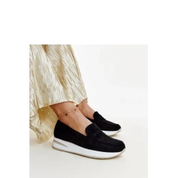 Čierne perforované poltopánky Muna sú ideálnou voľbou na leto. Sú vyrobené z kvalitnej gumy, sú nielen štýlové, ale aj pohodlné. Vďaka nízkemu prevedeniu a zaoblenej špičke sa skvele hodia na horúce dni. Navyše sa vďaka nazúvaciemu dizajnu ľahko obúvajú a vyzúvajú. Tieto moderné topánky dodajú eleganciu každému outfitu, vďaka čomu sa budete cítiť štýlovo a pohodlne počas celej sezóny. Vonkajší materiál je vyrobený z ekologickej semišovej kože, zatiaľ čo podrážka je z béžovej gumy. Ideálne na leto!