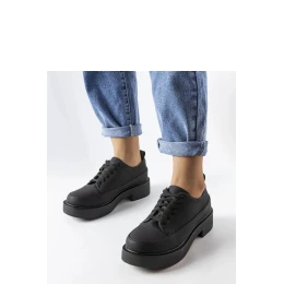 Elegantné a pohodlné čierne poltopánky s plochou podrážkou od značky Merico sú ideálnou obuvou na leto. Veľkosť je štandardná, stačí si vybrať svoju veľkosť. Vonkajšia časť topánok je vyrobená z kvalitnej ekologickej zam kože, ktorá zaručuje odolnosť a eleganciu. Topánky nemajú podšívku, vďaka čomu sú ideálnou voľbou na horúce dni. Podrážka je vyrobená z čiernej gumy a šnurovanie zaručuje ideálne prispôsobenie sa nohe. Tieto poltopánky z letnej kolekcie budú skvelým doplnkom každej letnej štylizácie.