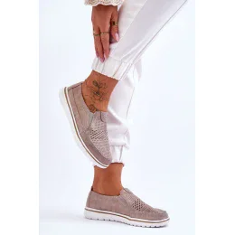 Dámske poltopánky boli vyrobené z prírodnej kože s ažurovým vzorom na prednej strane. Tento model má elastické pásy, ktoré umožňujú správne prispôsobenie topánky šírke chodidla. Umiestnené sú na platforme. Tento model je mimoriadne ľahký a pohodlný na nosenie. Stielka je tiež vyrobená z prírodnej kože.