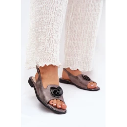 Połyskujące Sandały Damskie Z Ozdobą S.Barski KV51-006 Szare