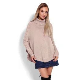 Pončo so zaobleným lemom. Rolák. Pletený vzor na rukávoch. Pončo s originálnym strihom. Starostlivé spracovanie.
