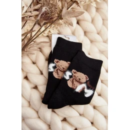 Teplé dámske ponožky ideálne na chladné dni. Model s aplikáciou medvedíka. Vďaka ľahkému švu dokonale priľnú k nohe. Určite by ste ich mali mať!