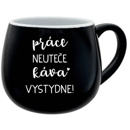 PRÁCE NEUTEČE, KÁVA VYSTYDNE! - černý keramický hrníček 300 ml