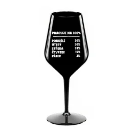 PRACUJI NA 100% - černá nerozbitná sklenice na víno 470 ml