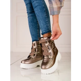Praktické hnedé snehule na plochom podpätku pre ženy