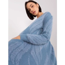 modrý dámsky vzorovaný sveter .