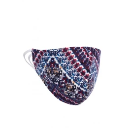 Vonkajšia strana: - 70% polyester - 20% bavlna - 10% elastan Vnútorná strana: - 95% bavlna - 5% elastan Dvojvrstvová maska na opakované použitie, vnútorná časť z tenkej bavlnenej tkaniny. Vrchná vrstva je pokrytá farebnou potlačou.