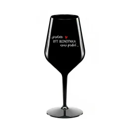 PROTOŽE BÝT BLONDÝNKA NENÍ PRDEL - černá nerozbitná sklenice na víno 470 ml