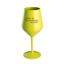 PROTOŽE BÝT INFLUENCERKA NENÍ PRDEL - žlutá nerozbitná sklenice na víno 470 ml