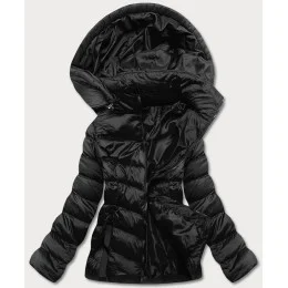 Čierna dámska bunda s kapucňou pre prechodné obdobie (5M786-392)