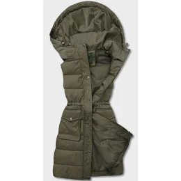 Dámska páperová vesta v army farbe s kapucňou (CAN-860)