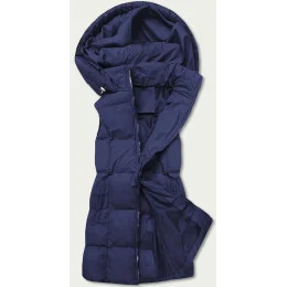 Tmavomodrá páperová dámska vesta s kapucňou (5M721-215)