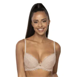 Estelle, jemný a decentný model s push-up košíčkami a zníženým stredom. Podprsenka je k dispozícii v troch farbách: bielej, čiernej a červenej. Vyrobená je celá z úžasnej čipky. V strede je malá mašlička s príveskom šperku. Ramienka nie sú odnímateľné a sú nastaviteľné. Push-up vypchávky sú odnímateľné. Trojitý háčik s trojstupňovým nastavením.