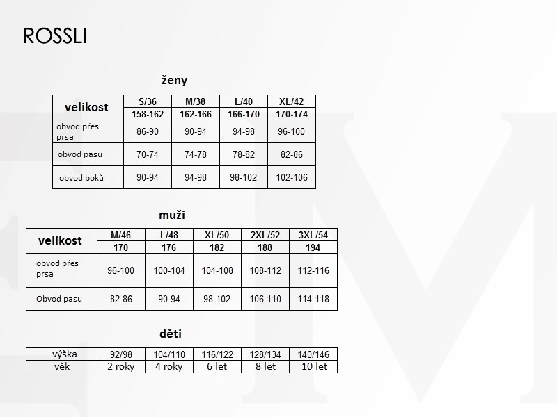 | Veľkosť | Obvod bedier | Obvod pŕs |
