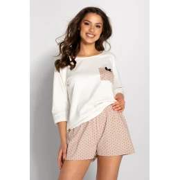 Dámske pyžamo pozostávajúce z blúzky a šortiek. Blúzka s 3/4 rukávmi, voľný pohodlný strih. Šortky s potlačou.