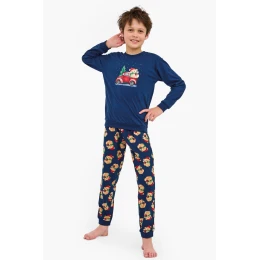 Chlapčenské pyžamo Cornette BOY YOUNG DR 966/172 TEDDY 2 je ideálnou voľbou na chladné vianočné noci. Je vyrobené z mäkkej a kvalitnej 100 % bavlny, ktorá zaručuje pohodlie a dobrý spánok. tričko s dlhým rukávom zdobí očarujúca potlač vianočného medvedíka, ktorá sa určite zapáči aj tým najmenším. Súčasťou súpravy sú dlhé vzorované nohavice. Elastické rebrovanie na výstrihu, manžetách, spodnej časti trička a nohaviciach zaručuje dokonalé prispôsobenie. Celá súprava je zabalená v krabici - skvelý nápad na vianočný darček pre chlapca.