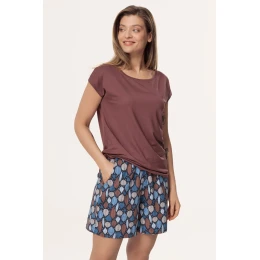 Dámske pyžamo Matilda je dokonalou kombináciou pohodlia, ženského štýlu a vysokokvalitných materiálov. Je vyrobené z mäkkej a priedušnej viskózy s elastanom a zaručuje maximálne pohodlie a dokonalé prispôsobenie. Tričko s krátkymi rukávmi v tlmenej, elegantnej farbe sa krásne hodí k voľným šortkám zdobeným módnym kvetinovým vzorom. Pyžamo Matilda je vhodné ako oblečenie na spanie a ako pohodlný domáci komplet na teplé dni. Prírodná tkanina je jemná k pokožke a elasticita látky zaručuje voľnosť pohybu počas celej noci.