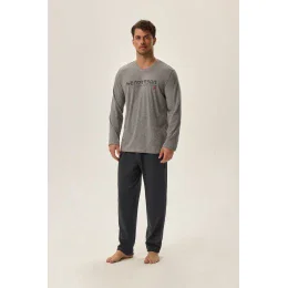 Pyžamo pre muže Japan potěší každého milovníka klasických súprav na spanie. Sada je v šedej farbe. Skládá sa z košile s dlhým rukávom a tmavších nohavíc s dĺžkou po kotníky. Měkká bavlněná pletenina zabezpečuje, že pyžamo je príjemné na dotek. Vrchní část pyžama je zdobena nápisem s názvom značky. Složení: Vrchní část: 95% bavlna, 5% viskóza Dolní část: 100% bavlna Rozměry: Velikost M: Prsa 94-98 cm, boky 98-102 cm Velikost L: Prsa 98-102 cm, boky 102-106 cm Velikost XL: Prsa 102-106 cm, boky 106-110 cm Velikost XXL: Prsa 106-110 cm, boky 110-114 cm