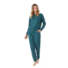 Dámske pyžamo, ktoré sa bude skvele hodiť ako nočná bielizeň aj ako štýlové domáce oblečenie. Vrchný diel s polkruhovým výstrihom a dlhými rukávmi s manžetami zaručuje voľný a pohodlný strih. Vrecká na bokoch dodávajú funkčnosť. Pyžamo je vyrobené z mäkkej a priedušnej tkaniny s potlačou a zaručuje pohodlie počas celého dňa. Dlhé nohavice s manžetami, s elastickým pásom a šnúrkami na úpravu, sa dokonale prispôsobia postave a zabezpečia pohodlné nosenie. Ideálna voľba na každú dennú dobu.