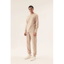 Mužský pyžamový set, který spojuje pohodlí s elegantním stylem, ideální jak na noční odpočinek, tak na relaxaci doma. Mikina s dlouhým rukávem se zapínáním na tři knoflíky vpředu nabízí volný, pohodlný střih, který zajišťuje plnou volnost pohybu. Dlouhé rukávy a piké vzor látky dodávají celku moderní charakter. Dlouhé kalhoty mají nohavice zakončené elastickým lemem, co zajišťuje pohodlí a dobře se přizpůsobuje postavě. V pasu je gumový pásek a šňůrky, které umožňují ideální přizpůsobení pyžama individuálním potřebám. Vyrobený z měkké, prodyšné látky, pyžamo zajišťuje pohodlí a umožňuje kůži dýchat. Skvělá volba pro muže, kteří si cení pohodlí a stylu v každé situaci! Měření: Velikost M: hrudník 94-98 cm, boky 98-102 cm Velikost L: hrudník 98-102 cm, boky 102-106 cm Velikost XL: hrudník 102-106 cm, boky 106-110 cm Velikost XXL: hrudník 106-110 cm, boky 110-114 cm Velikost XXXL: hrudník 114-120 cm, boky 114-118 c