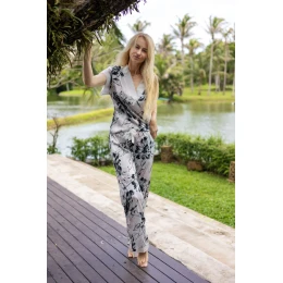 Elegantná súprava z hodvábu v jeho saténovej väzbe, ktorá sa skladá z dlhých nohavíc a blúzky s krátkym rukávom. Nohavice a blúzka majú mierne voľnejší strih pre maximálne pohodlie. Celkový dojem vytvára jemná tkanina so vzorom, ktorý evokuje luxus a exotiku. Oblečte si súpravu Alicuda a budete sa cítiť neuveriteľne elegantne a pohodlne. Súprava je dokonale zladená s podprsenkou Sicily, ktorá je vyrobená z rovnakej tkaniny. Spodná bielizeň je zabalená v krásnom, veľkom balení (ideálne ako darček).