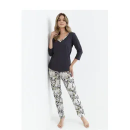 Tričko s 3/4 rukávmi a výstrihom do V poskytuje pohodlie a voľnosť pohybu. Súčasťou súpravy sú nohavice s potlačou, ktoré dodávajú súprave módny charakter. Elastický pás zaručuje ideálne prispôsobenie. Celá súprava je zabalená v praktickom fóliovom vrecúšku, takže pyžamo je skvelou voľbou na darček