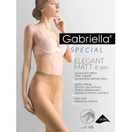 Pančucháče sú vyrobené pomocou modernej technológie Lycra 3D. Vďaka tepelnej pamäti dokonale priliehajú k telu a vytvára efekt druhej kože. Model je takmer neviditeľný, ideálne prilieha k nohám a obaľuje ich tenkou hmlistou vrstvou látky. Vďaka matnému prevedení vytvára pančucháče efekt hladkej kože a zakrývajú prípadné nedostatky. Model Elegant Matt 8den využijete pri všedodením nosenie aj pri oficiálnych príležitostiach. Tento model je hitom, ktorý milujú fanúšičky matných pančúch.
