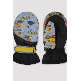 Zateplené rukavice pre chlapcov s ortodoxnou potlačou a jedným prstom.Rukavice sú zakončené manžetou s pásikom na nastavenie šírky - dobre držia na rukovätiach, chránia pred snehom.