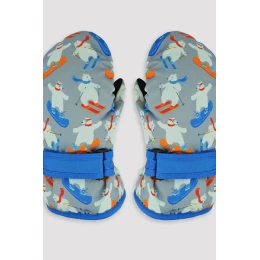 Rukavice Orthalion s potlačou, zateplené, jednoprstové pre chlapcovó.Rukavice ukončené manžetou s pásikom na nastavenie šírky - dobre držia na rukovätiach, chránia pred snehom.