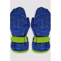 Rukavice Orthalion s potlačou, zateplené, jednoprstové pre chlapcovó.Rukavice ukončené manžetou s pásikom na nastavenie šírky - dobre držia na rukovätiach, chránia pred snehom.
