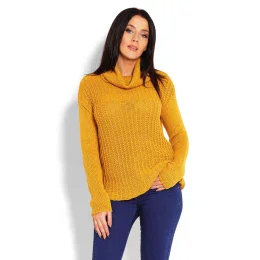 Klasický sveter s neobvyklým prešívaním. Rolák. Sveter s dlhými rukávmi.