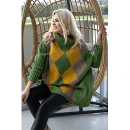 Dámsky pončo sveter s dlhými rukávmi a rolákom. Sveter je mäkký a nadýchaný na dotyk.