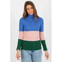 Dámsky sveter s dlhým rukávom a rolákom z rebrovaného materiálu v troch farbách.