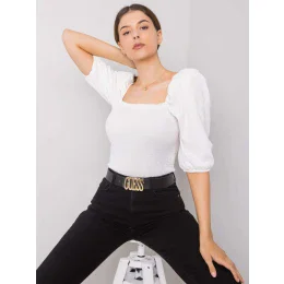 RUE PARIS Biela blúzka s bufetovými rukávmi .