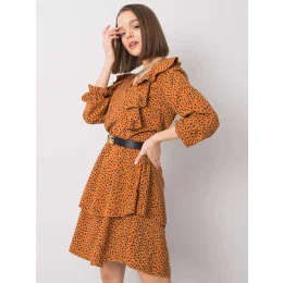 RUE PARIS Svetlo hnedé šaty s volánikmi .