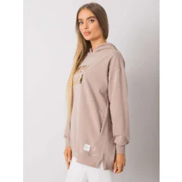 RUE PARIS Tmavo béžová mikina s kapucňou a vreckami.