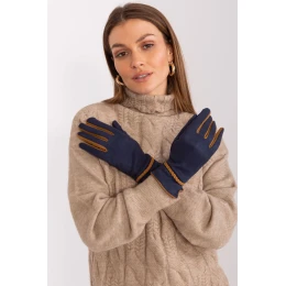 Elegantné dámske rukavice z hladkej tkaniny s kontrastnými vsadkami medzi prstami. Ozdobné kontrastné pletené pásiky na zápästí. Palec a ukazovák s vyšívaným kvetom, ktorý umožňuje ovládať telefón bez nutnosti vyzliecť si rukavice.