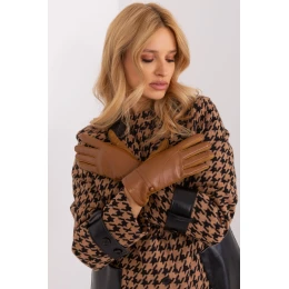 Elegantné dámske rukavice vyrobené z kombinácie dvoch rôznych materiálov. Ozdobné pásy s gombíkmi na zápästí. Ukazovateľ s vyšívaným kvetom, ktorý umožňuje ovládať telefón bez toho, aby ste si museli rukavice vyzliecť.