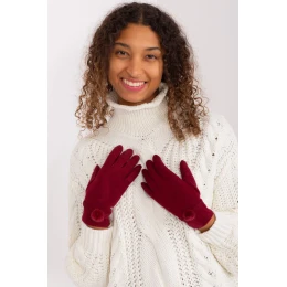 Elegantné pletené dámske rukavice z hladkej tkaniny. Ozdobné bambuľky na zápästí. Ukazovateľ s vyšívaným kvetom, ktorý umožňuje ovládať telefón bez nutnosti vyzliecť si rukavice.